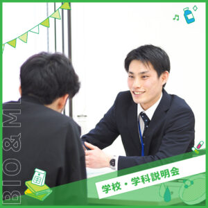 理系大学第一志望でバイオ分野の専門学校の併願を検討されている方に、入試のことや学費のことを個別に詳しくご説明します。