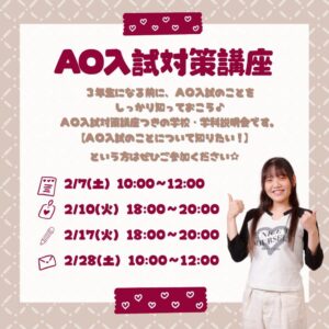 土曜や平日夕方から参加できるAO入試に向けた対策講座です!
