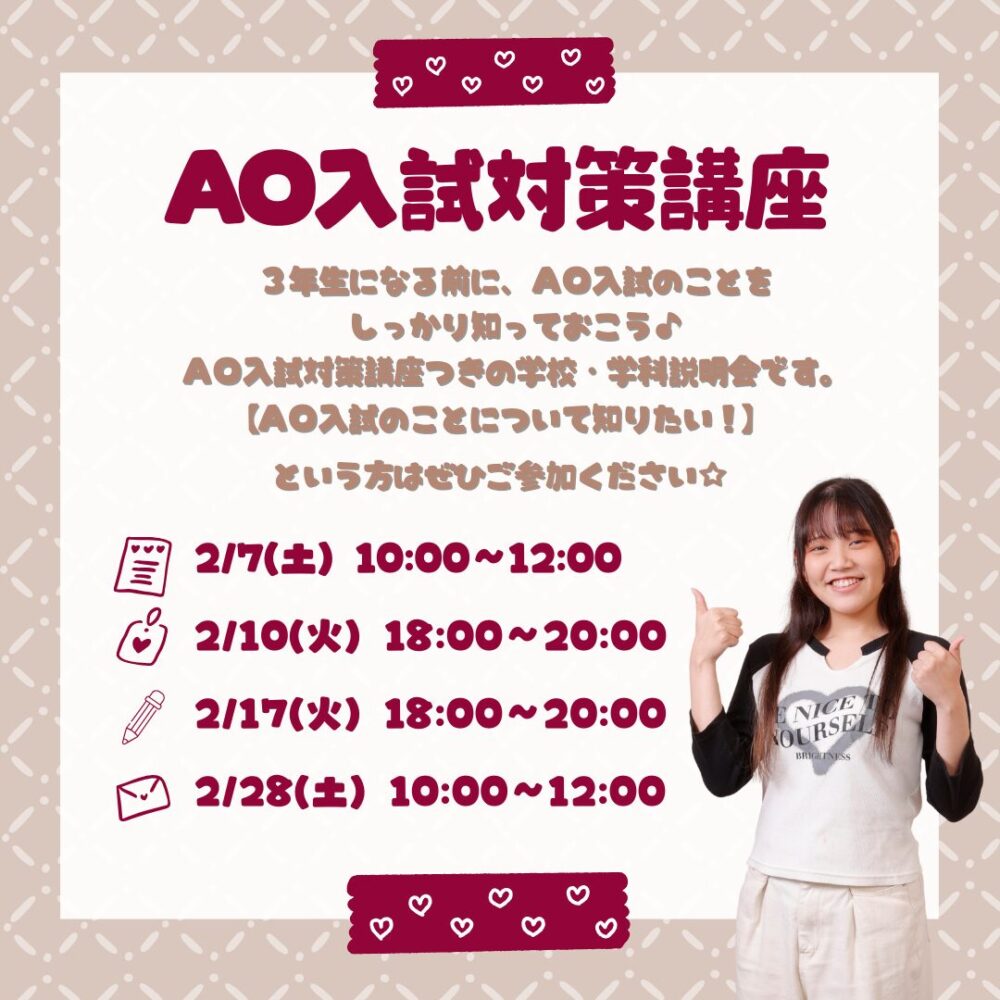 AO入試のことについて知りたい!AO入試を受けたい!という方はぜひご参加くださいね☆