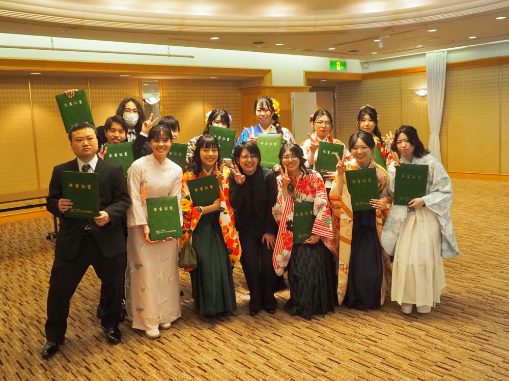 式の後は、学科別に部屋を分かれて先生から一人ひとりに卒業証書をお渡しして、そして恒例のフォトタイム!📸
