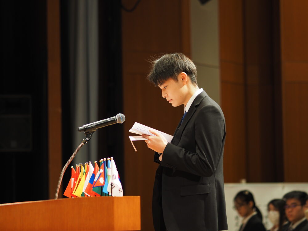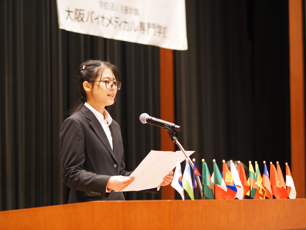 新入生代表として、バイオ学科1年のKさんが誓いの言葉を述べました。