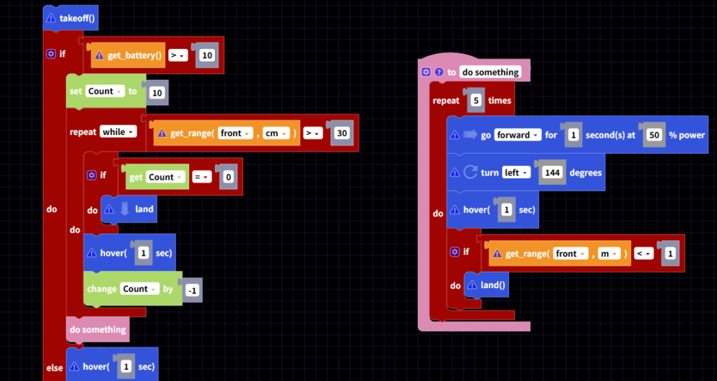 体験授業でも、この「ノーコード」で実際にドローンを飛ばす体験ができます!